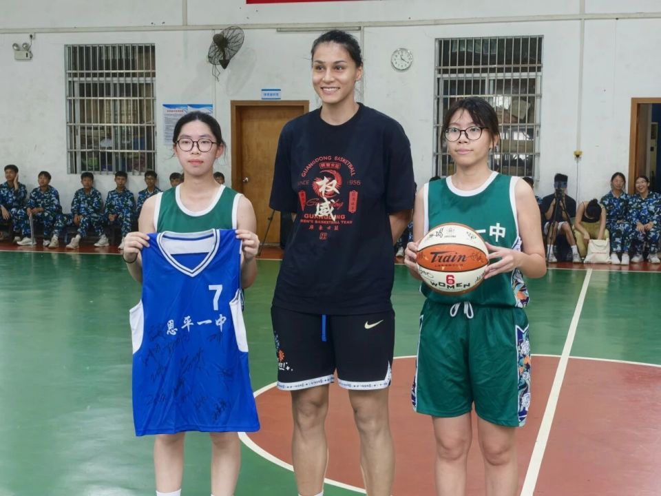 活动中,广东女篮向恩平一中赠送了签名篮球和队服,恩平一中回赠了纪念品。恩平一中学生还为广东女篮献唱了歌曲,悠扬的歌声久久回荡在体育馆内,现场气氛达到了高潮。